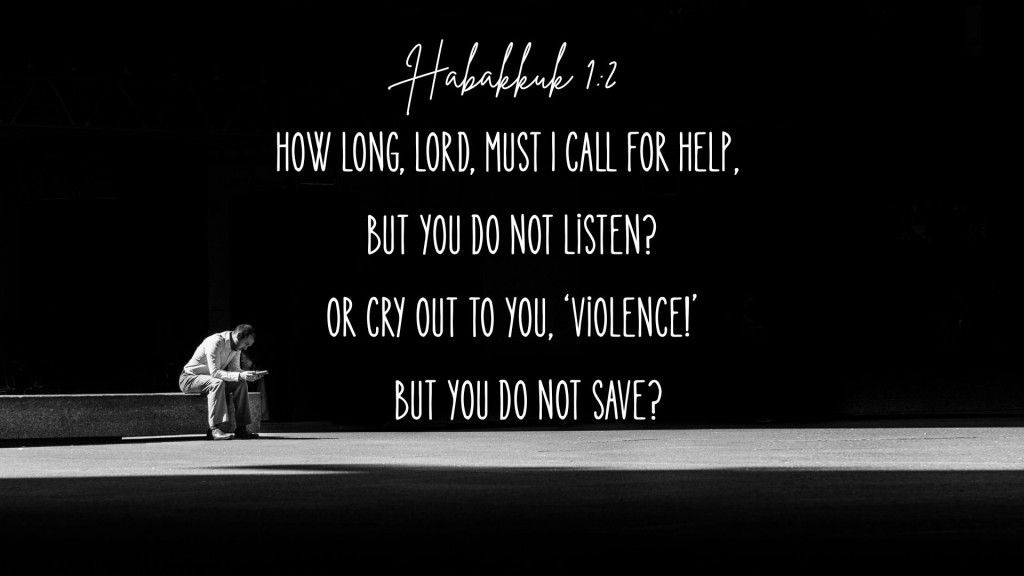 1 1 The prophecy that Habakkuk the prophet received. 2 How long, Lord, must I call for help, but you do not listen? Or cry out to you, ‘Violence!’ but you do not save? 3 Why do you make me look at injustice? Why do you tolerate wrongdoing? Destruction and violence are before me; there is strife, and conflict abounds. 4 Therefore the law is paralysed, and justice never prevails. The wicked hem in the righteous, so that justice is perverted.